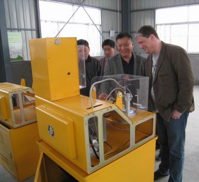圖二、外商正在調(diào)校CRI-200型高壓共軌噴油器試驗(yàn)設(shè)備